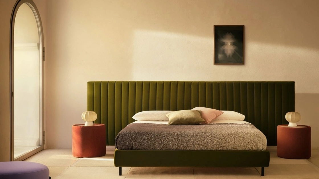 Il letto Noah deluxe Maison Extra Large in tessuto, tra i modelli imbottiti matrimoniali design di Bolzan Letti, è pensato per assicurarti il riposo migliore.