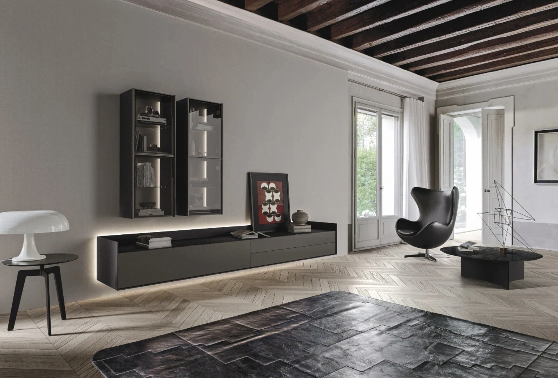 Se sei alla ricerca di pensili moderni, con il modello Cabaret One 02 in laccato opaco di Sangiacomo potrai ultimare un living dinamico e operativo.
