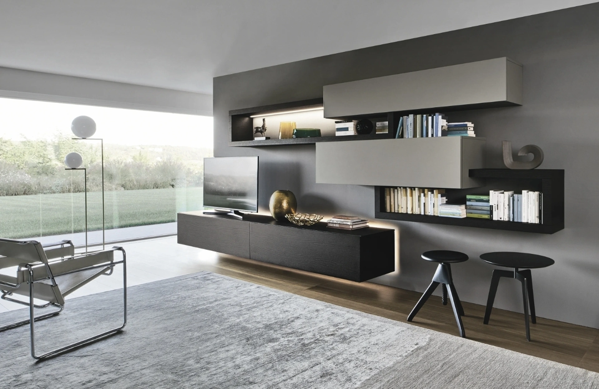 Pareti attrezzate e mobili giorno Sangiacomo: clicca e scopri il modello Lampo 046 e potrai valorizzare stanze moderne di ogni tipo.