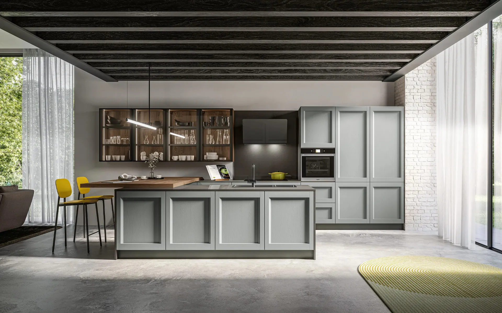Clicca e scopri un mondo di Cucine Moderne con penisola: la cucina Frida 01 con penisola Arredo3 in laccato opaco ti attende!